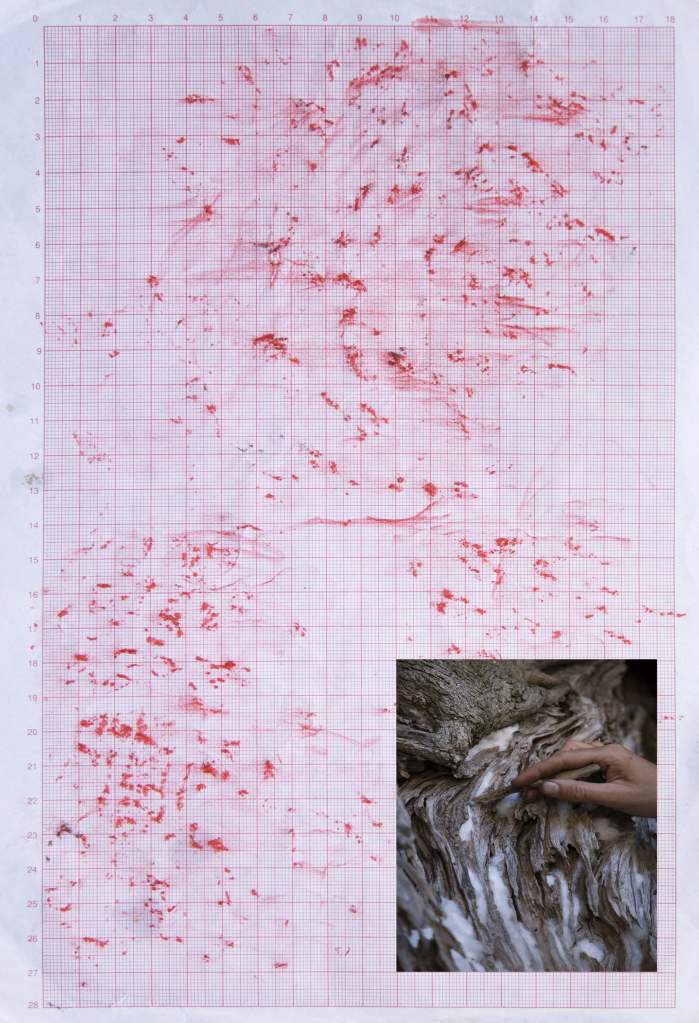 Dealing with the‘sickness’ of the tree ,in the work One body Thousand trees i metaphorically heal it’s wounds by placing cotton in the cracked surfaces of the trunk , as if the tree itself was a human being. The act questions the relationship, the affection and the sensitivity of man towards nature, the importance of coexistence and balance. In the same time i aim to critic the pesticide culture and the intensive agricultural methods.